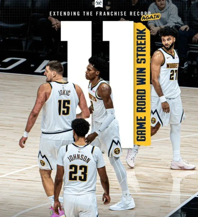 截止到第三节,掘金本赛季已经9次三节得分过百,同样高居全联盟第一位,一战连创两大神迹。此外,约基奇三节16中14,三分2中2独砍36分12篮板8助攻2抢断。